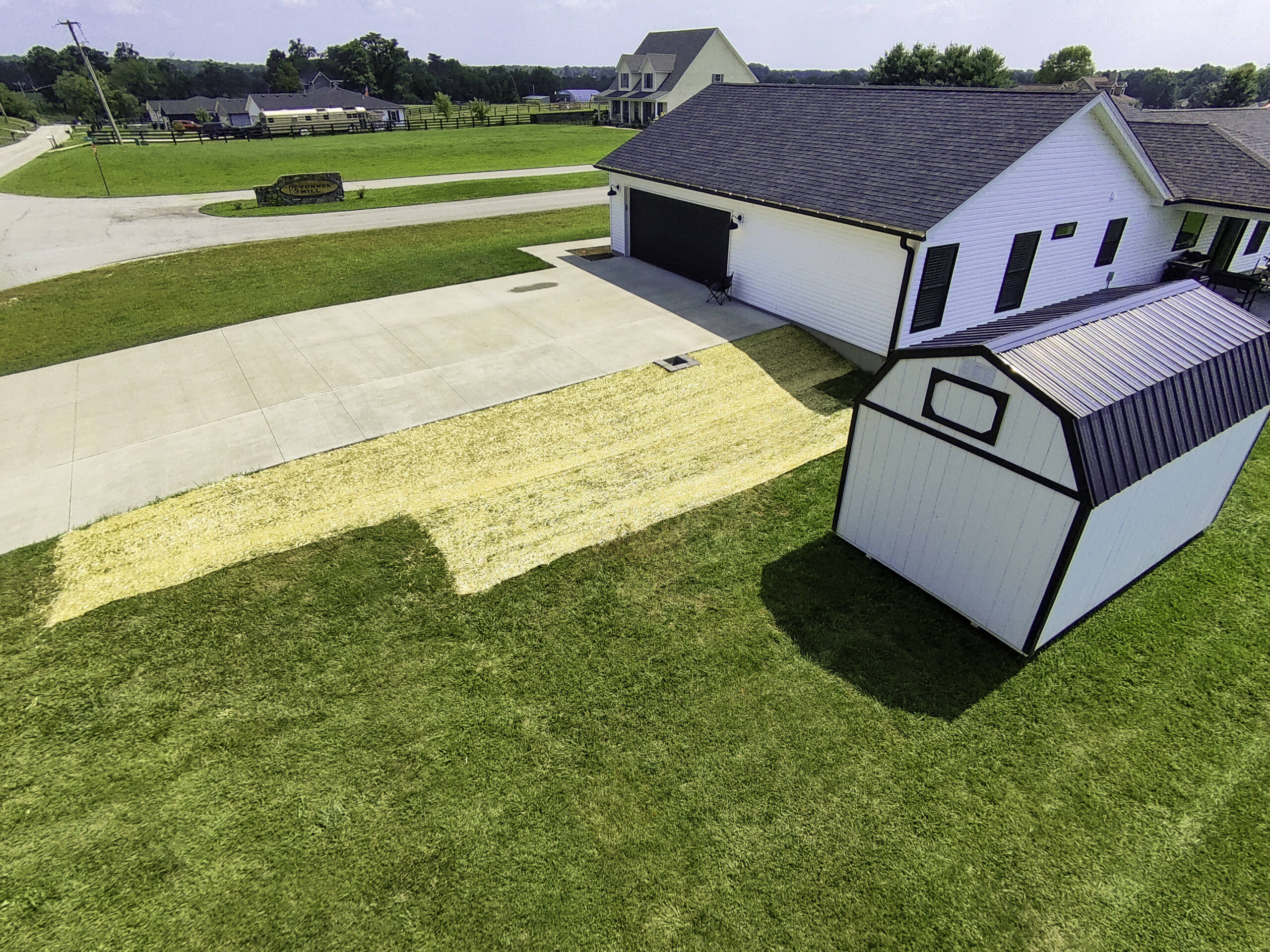 - Powerseeding: Our specialized equipment plants grass seed directly into the soil at the ideal depth, resulting in much higher germination rates than traditional broadcasting.